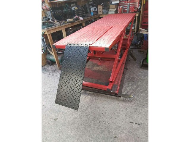 Motorbike lift, caravan, go-karts, lawn mowers, ride on mowers etc. Designed and built in N Ireland. Fully insured and design checked by engineer.