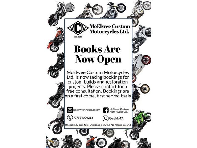 If interested in a custom motorcycle build or motorcycle restoration, please contact Gerard McElwee on 075 940 24213, email [email protected]