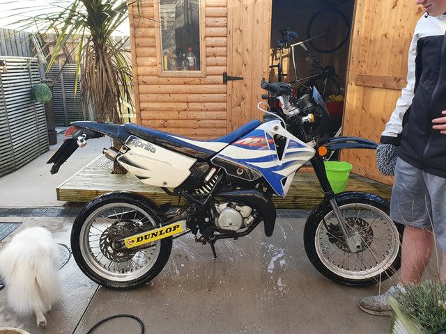 For Sale 2006 MX 50 Aprilla rd bike .. I bought this bike last month for my son turning 16 . It doesn't have MOT and needs someone to do a few bits to it for MOT ... my son has since got a smaller pit bike 50 for the rd . This is up for sale . Would make a good project for anyone wanting to put it through the MOT it is sorn at the minute . All the V5 documents are here. Bike starts ok and runs but some of the electrics speedo doesn't appear to work . I am open to sensible offers . I paid 500 pounds for the bike only last month . Private message me for further details thanks