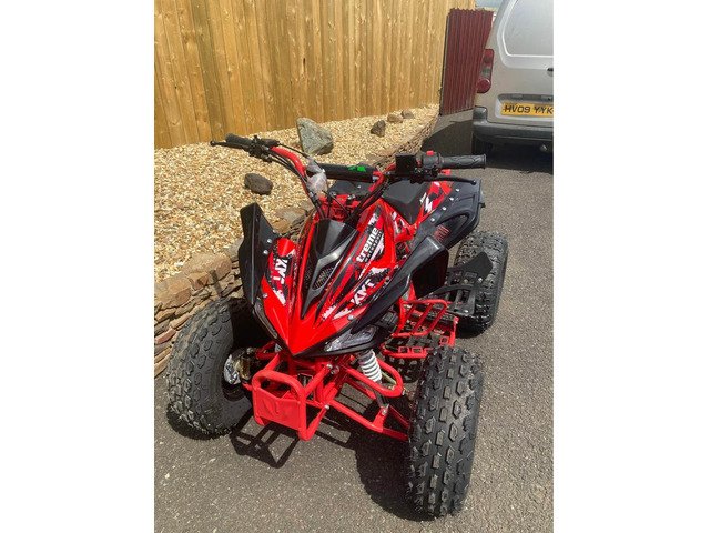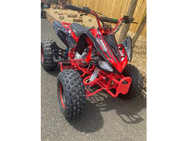 Mx Xtreme 125 Quad , forward and reverse gear and electric start wi remote start also! Big wheel model ! Safety lanyard !