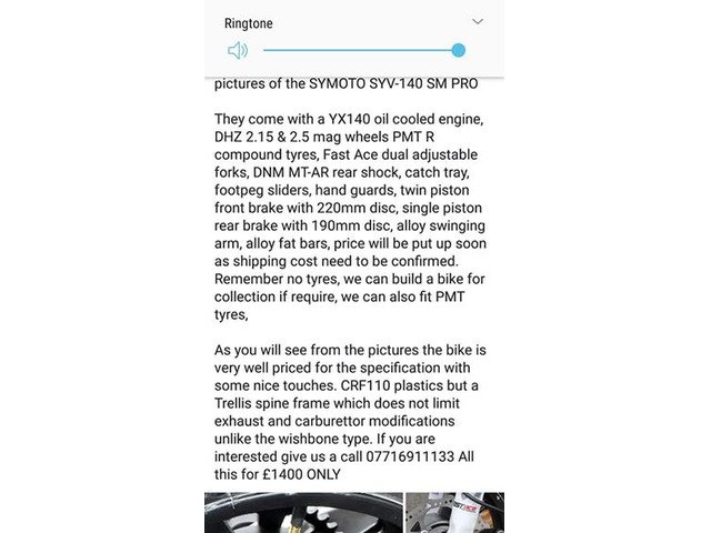 Supermoto pit bike top spec best bike on market at this time for the money you won't beat price like for like £1400 on the track.