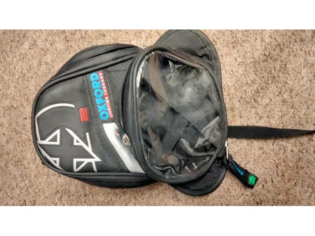 Oxford tank bag with waterproof cover. A bit dusty but otherwise in good nick. £5