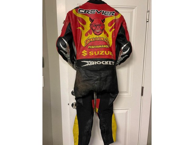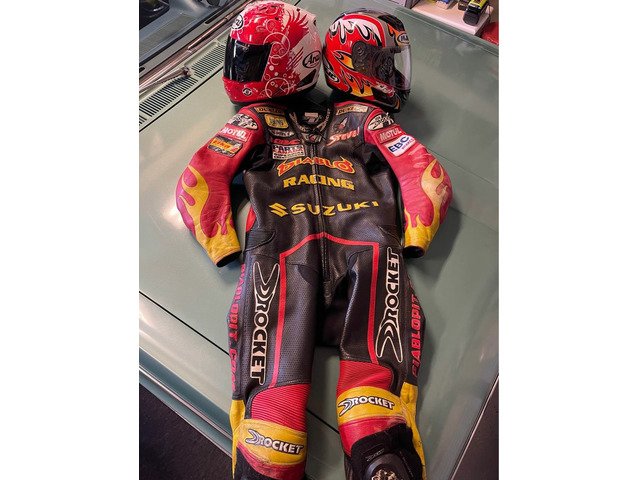 Im selling a super hard to come by amazing collection of Steve Crevier’s signed race used/worn helmets & custom all leather one of one race suit that I acquired from someone who received it in an estate. They were one of the family members of the pro racer Randy Mamola.