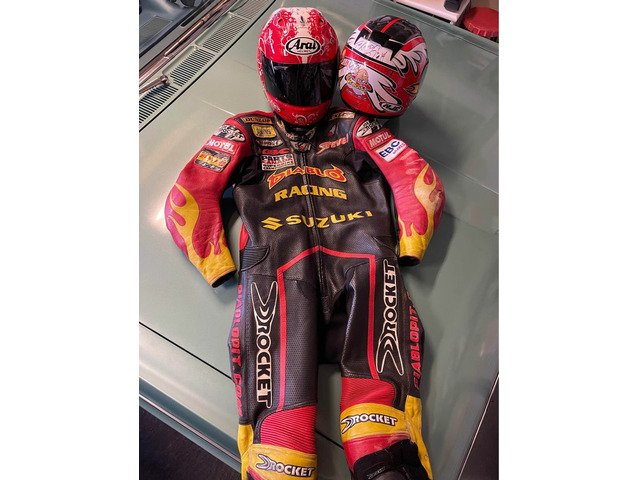 Im selling a super hard to come by amazing collection of Steve Crevier’s signed race used/worn helmets & custom all leather one of one race suit that I acquired from someone who received it in an estate. They were one of the family members of the pro racer Randy Mamola.
