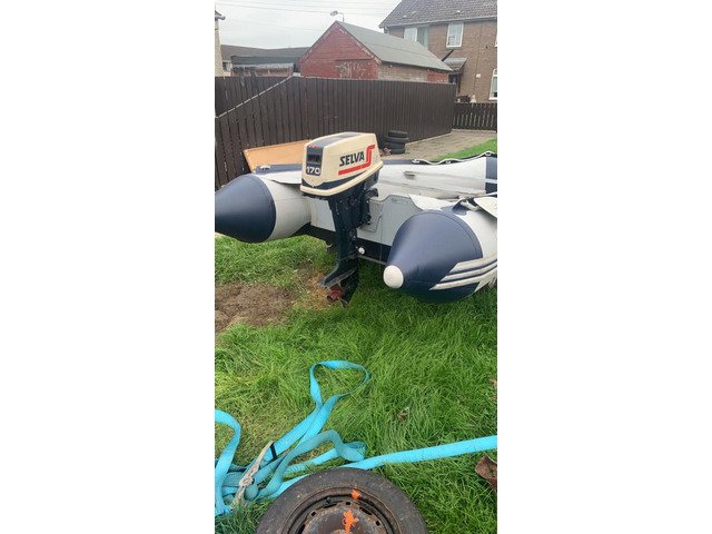 Rib is 3.5meters long, real good rib in the water, can hold up to a 30hp engine on the back, comes with trailer and a 10hp selva engine and also a spare engine for parts