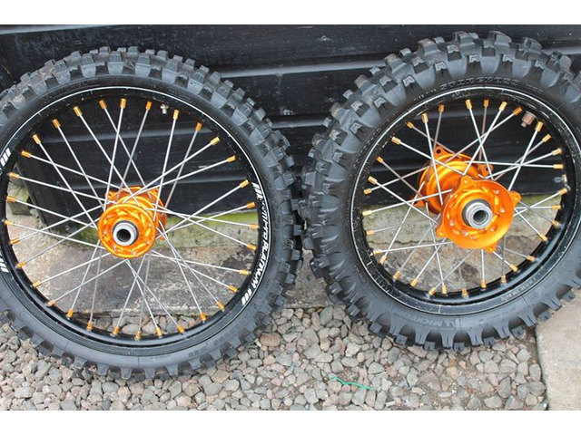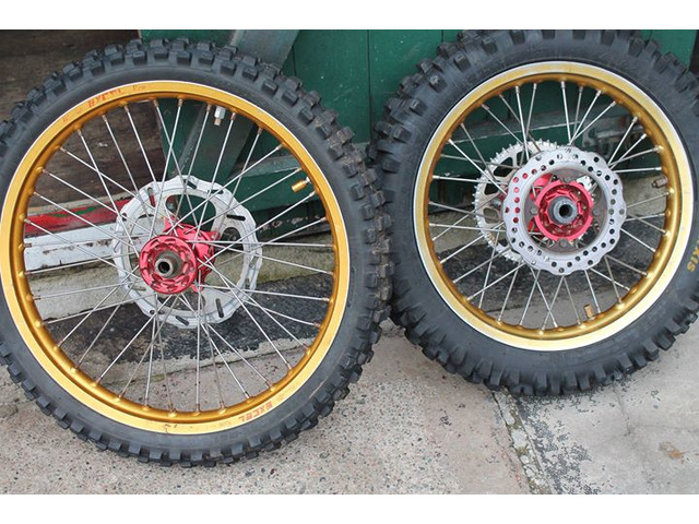 black ktm 85 rims and gold crf 150 rims also have extra long swing arm and longer forks and taller frame for crf 150 for sale pm me
