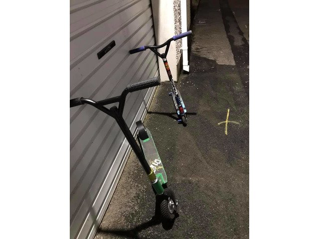 Both scooters are in really good condition £30 for the both of them or £10 for the green one which is a dirt scooter £20 for the blue one