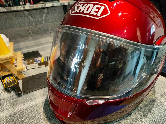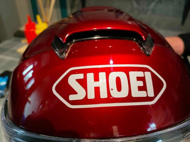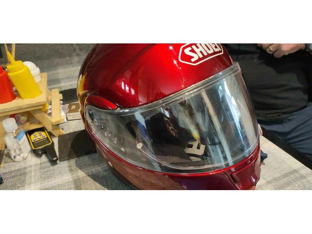 Like new shoei open face helmet with drop down visour and pin lock. One tiny mark on back as u can see, apart from that helmets in great condition selling for a friend. £200 ono