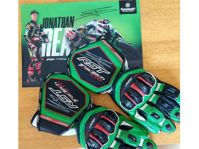 Signed pair of gloves by Jonathan Rea World superbike champion. All proceeds to charity. I also have a picture of JR signing them but cannot publish it here.