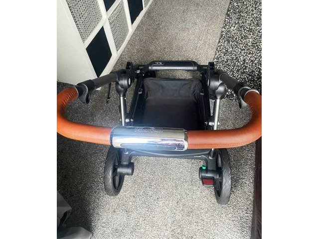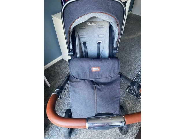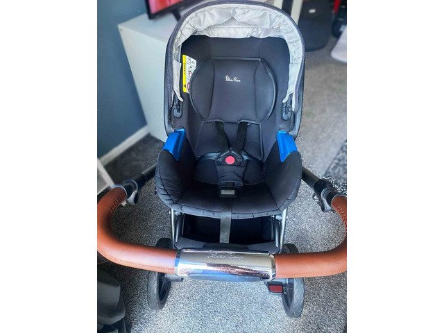 Lovely silver cross travel system which turns into tandem