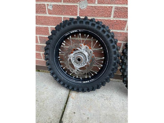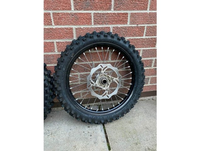 Comes with discs and also comes with new mx33 tyres front and back tyre has only did 1 race