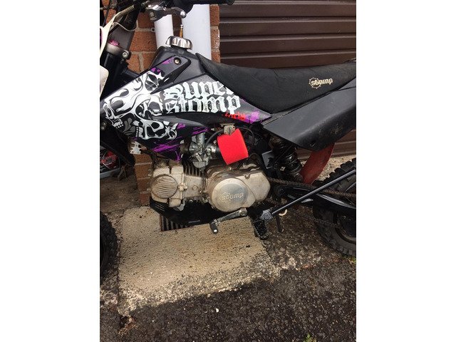 Stomp140 big frame, in good condition, clutch and gearbox perfect, quick action throttle, new air filter, new oil, new spark plug, new front tyre, new fold back clutch lever, could do with a set of plastics if fussy other than that bikes on the button, £550 Ono don’t mail me if your not going to come look at it