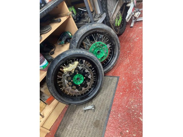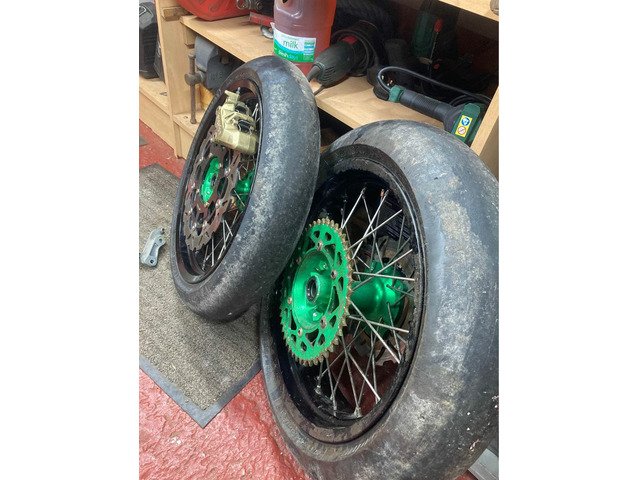 Wheels came out of 2010 kxf 450 but will fit most bikes with correct spacers! Excel hubs, big disc with brembo caliper and spacer bracket,