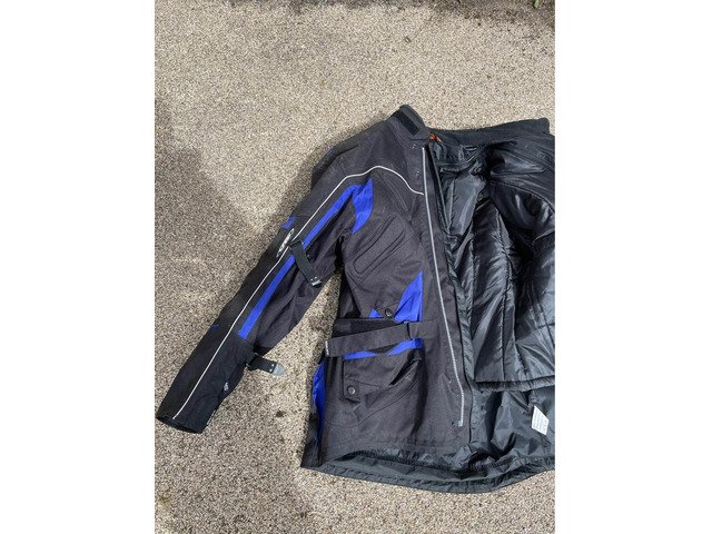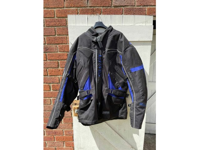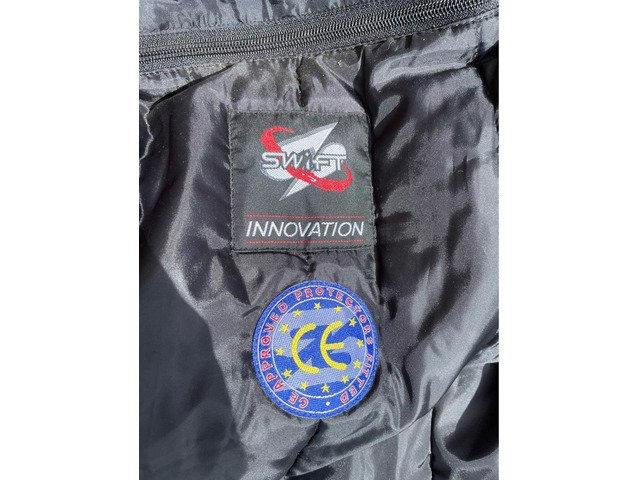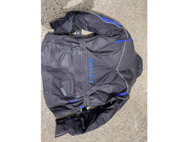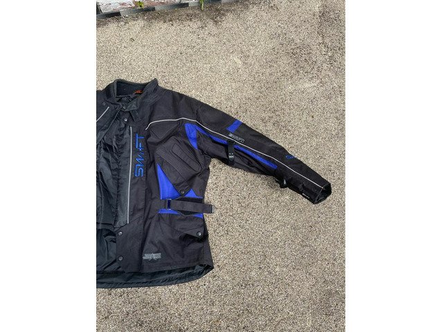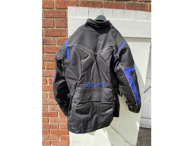 Swift stealth textile motorcycle jacket size xxxxl, comes with a removable thermal liner jacket. Been hanging in garage this last 8 years so it needs a good clean as quite dusty