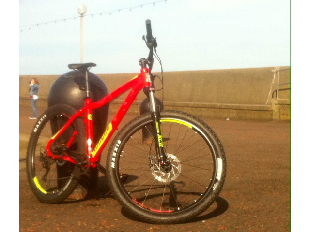 Here I have is my voodoo mounting bike for sale the bike is like new there's just a few marks on it but nothing bad it's a real good bike with dice breaks and all pluse u can lock and unlock the forks at the front off the bike as well real good bike but all it needs is a new chain cuz old one snapped