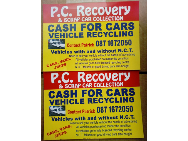WANTED SCRAP CARS VANS TRUCKS TRACTOR JEEPS RUNNING OR NOT END OF LIFE CERTIFICATE ISSUED ON YOUR DOOR STEP CASH ON COLLECTION PRICES DEPENDING ON YOUR CAR FROM 50 TO 1000 COLLECTED WITHIN 24HOURS PM OR CALL 0871672050 I COVER MONAGHAN CAVAN LOUTH MEATH DUBLIN TYRONE