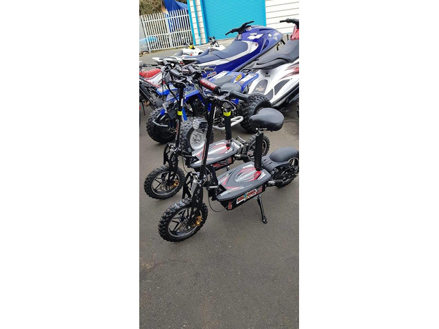 Evo 1800 watt 50 kph electric scooters. Demo models . Up to 28 km range . Serious fun . Scooters fold and seat comes off . Two demo models . Full price € 850 now only 695 hardly used sold with full warranty . Whole new way to get around. Full range of petrol and electric scooters on muckandfun.com with specks videos prices . Summer fun is muckandfun.