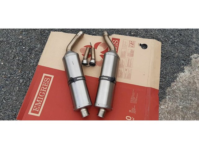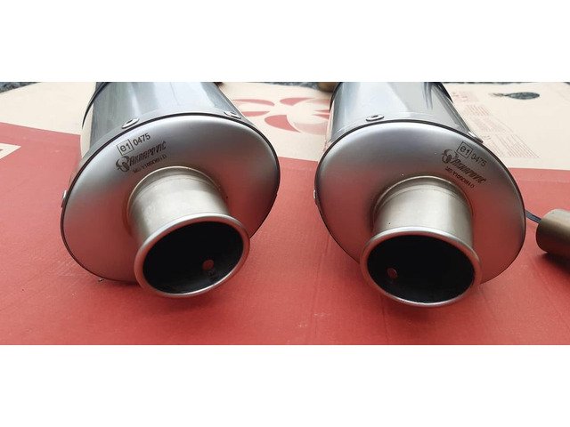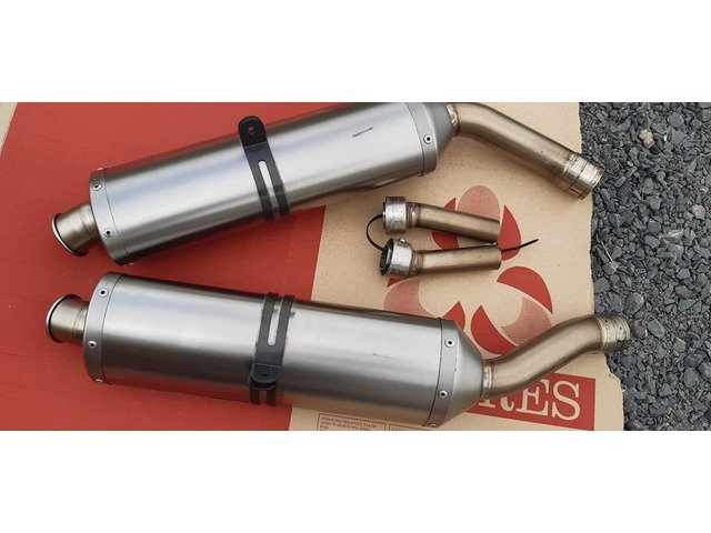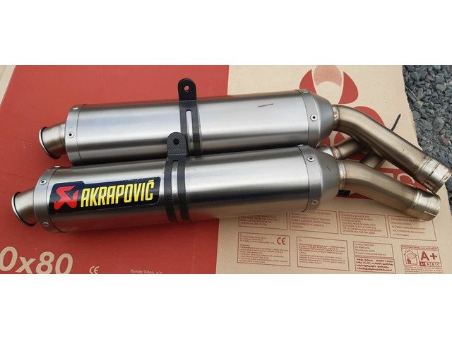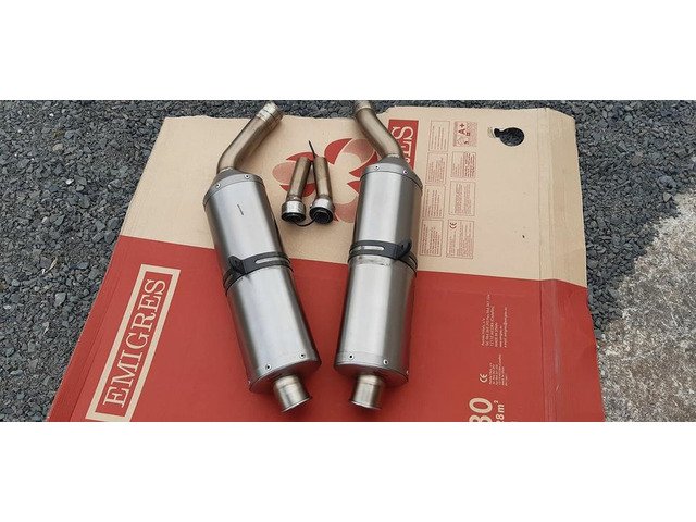 Akrapovic twin titanium exhausts with carbon hangers and silencer baffles
